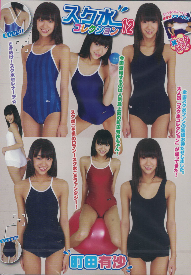 スク水万歳!!全国のお兄ちゃんに様々なスクール水着をご紹介♪大人気町田有沙ちゃんが大胆に何種類ものスクール水着をご紹介!水着の特徴をズームでご紹介しちゃう意欲作!スク水の勉強と少女の勉強にはうってつけ!一石二鳥のお得な1枚!